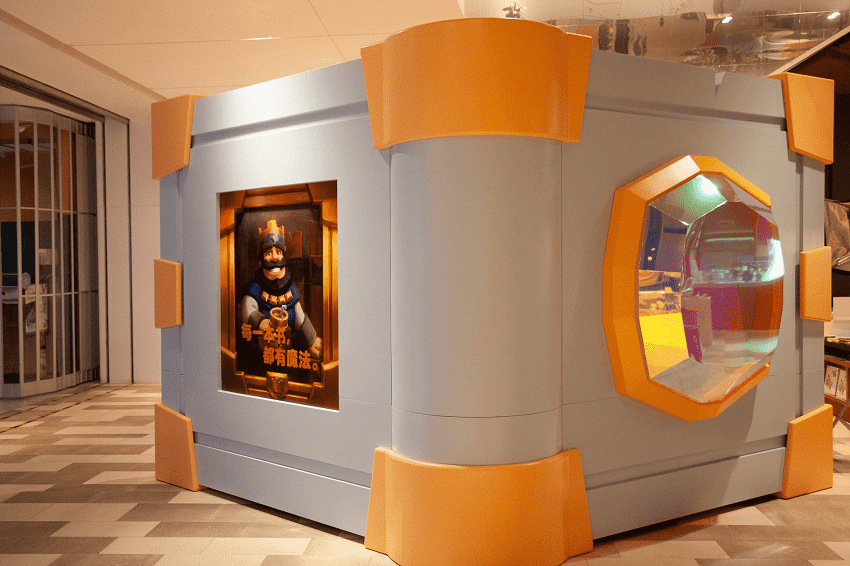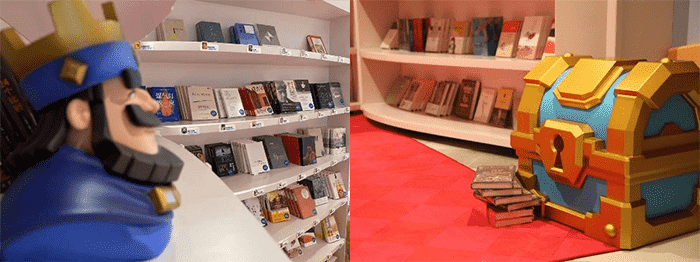 这个出现在北京朝阳大悦城上海三联书店READWAY的大型书柜,原型是《皇室战争》中的魔法物品“任意之书”——在游戏中,它能让玩家直接获得想要的卡牌,快速升级。