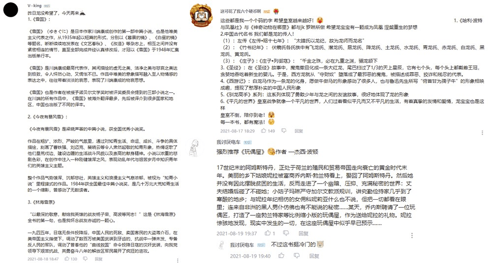这种信心不仅来自于玩家对于“皇室书单”上书目的了解、对官方发起的大型送书活动的热情,更来自于他们参与荐书活动时的原创内容。
