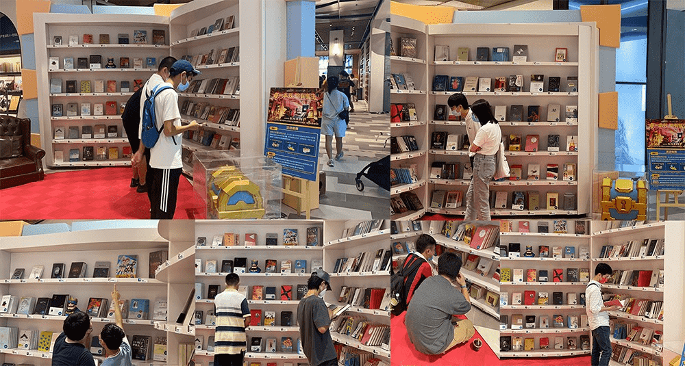 为了提供给玩家一个更沉浸的阅读场景。跳脱出地铁包装、商场快闪等更具商业气息的线下活动地点,上海三联书店READWAY这个志同道合的伙伴——毕竟,书店才是最适合浏览、阅读书籍的地方。而在后疫情时代,线下书店也是一个需要更多人关注的实体产业,我们希望能为之做些力所能及的事。