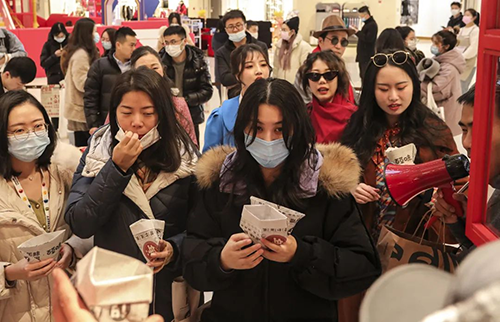 前来嗑坚果的群众们,将围观精神发扬到底,现场一片欢腾热闹。