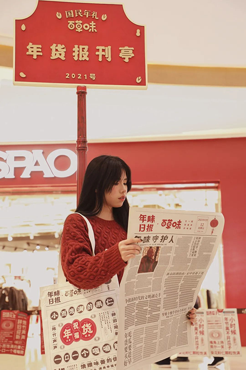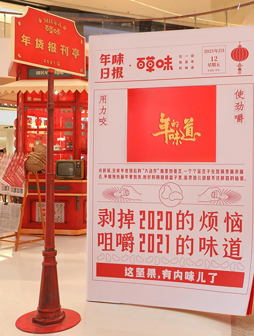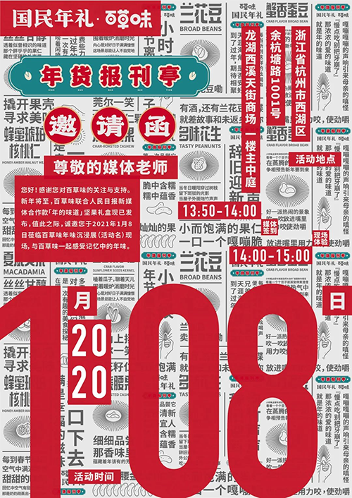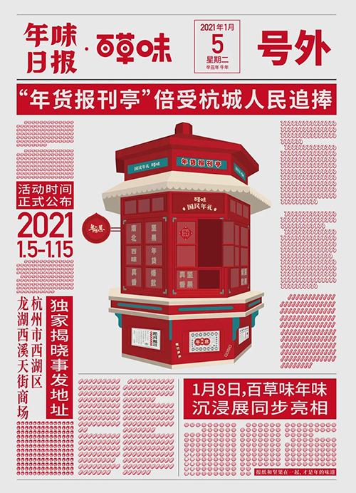 我们和百草味一合计,决定在杭州开一座年货报刊亭,带2021年的大家重返八十年代,通过报纸包坚果,找回以前的年味。
