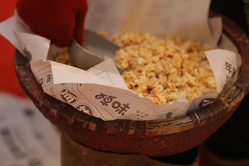 有爆米花小哥一顿操作猛如虎,用过去的爆米花机为游客们“蹦”出爆米花。