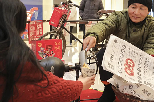 有守摊大爷在线吆喝,分发坚果。叠报纸是门手艺活,但你大爷还是你大爷,现场教学包你满意。