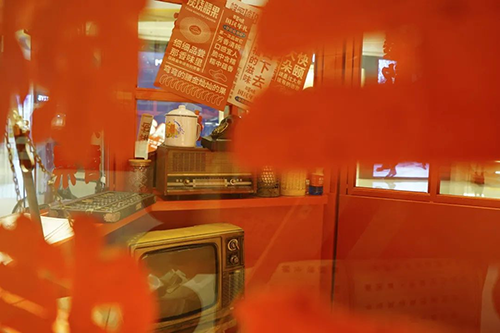 不只外部复古,现场布置也全都按照八十年代的风貌来办,旧电视机、旧秤砣、老算盘……一眼过去,就是那味儿。