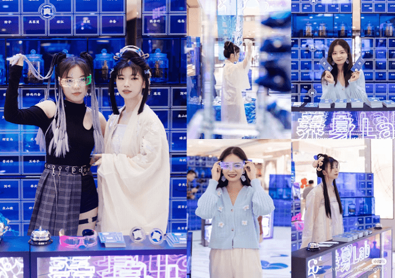 赛博朋克风+传统古风创意融合,定制“时尚养生”体验空间;新鲜稀缺感体验,提升年轻人群的主动传播阈值