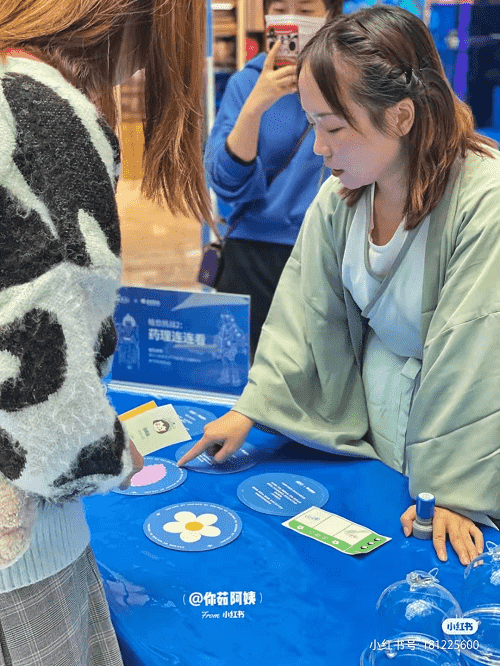 在药理连连看环节,参与者只需正确连线中药名与药理知识,即可得到通关印章。药理知识的底蕴积淀感、游戏内容的趣味探索性、身穿汉服的NPC小姐姐,让一种传统文化的穿越感扑面而来。连连看的游戏机制,让真不二·养生市集有力带动了现场的参与度和体验感,使得品牌在无形中得到文化背书,提升其信任度与好感。