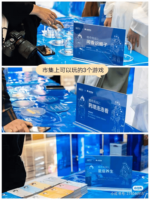 除了布景设计的别具匠心,养生市集还设计了闻香识栀子、药理连连看、星座养生这三大趣味游戏环节,打造了一种沉浸式的感官体验,深化品牌的场景化感知。与此同时,借助这一浸入式的闯关场景和交互式的活动环节,养生市集将品牌、产品与趣味感的情绪体验巧妙串联,软性输出了产品功能、建立直观的价值体感。