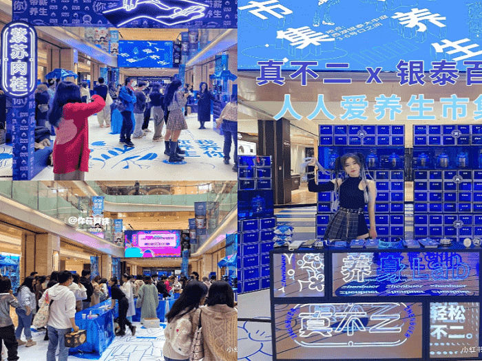 在当下,融入城市生活日常的市集,成为“消费新品牌的聚集地”,不仅开辟了多元化场景与品牌消费体验,而且让“赶集”成为年轻人的一种流行生活方式。基于此洞察,银泰百货联手真不二打造的养生市集,吸引年轻人在现场相聚,探索市集热闹氛围里的未知与新鲜,也让年轻人在去人格化的现代生活中找到面对面交往的真实感,建立起一条有效对话用户的新通道。